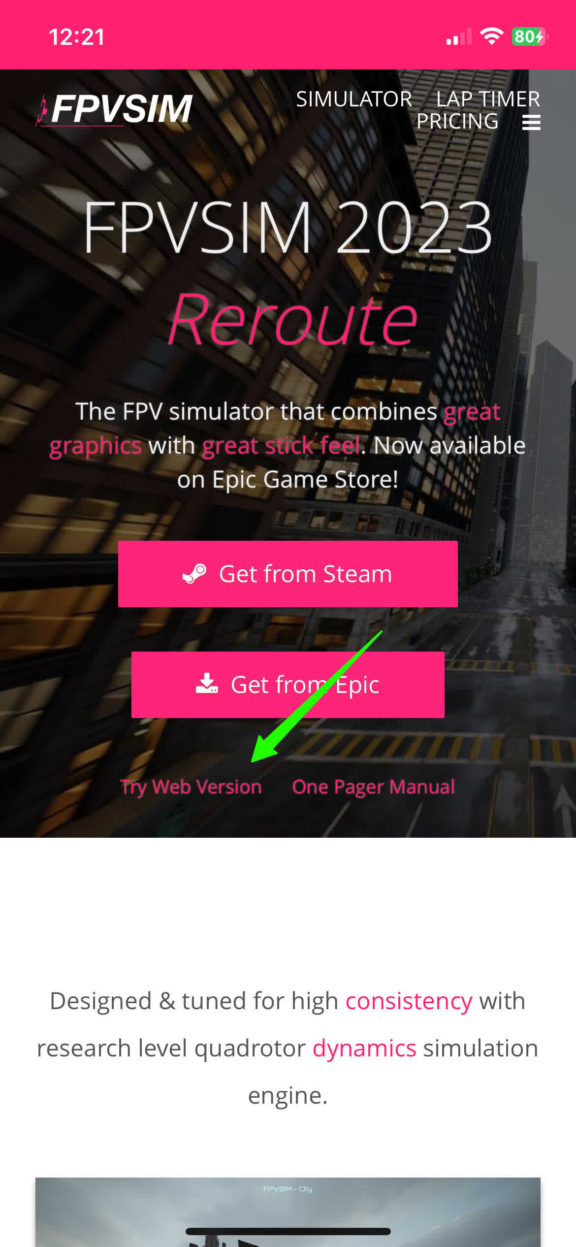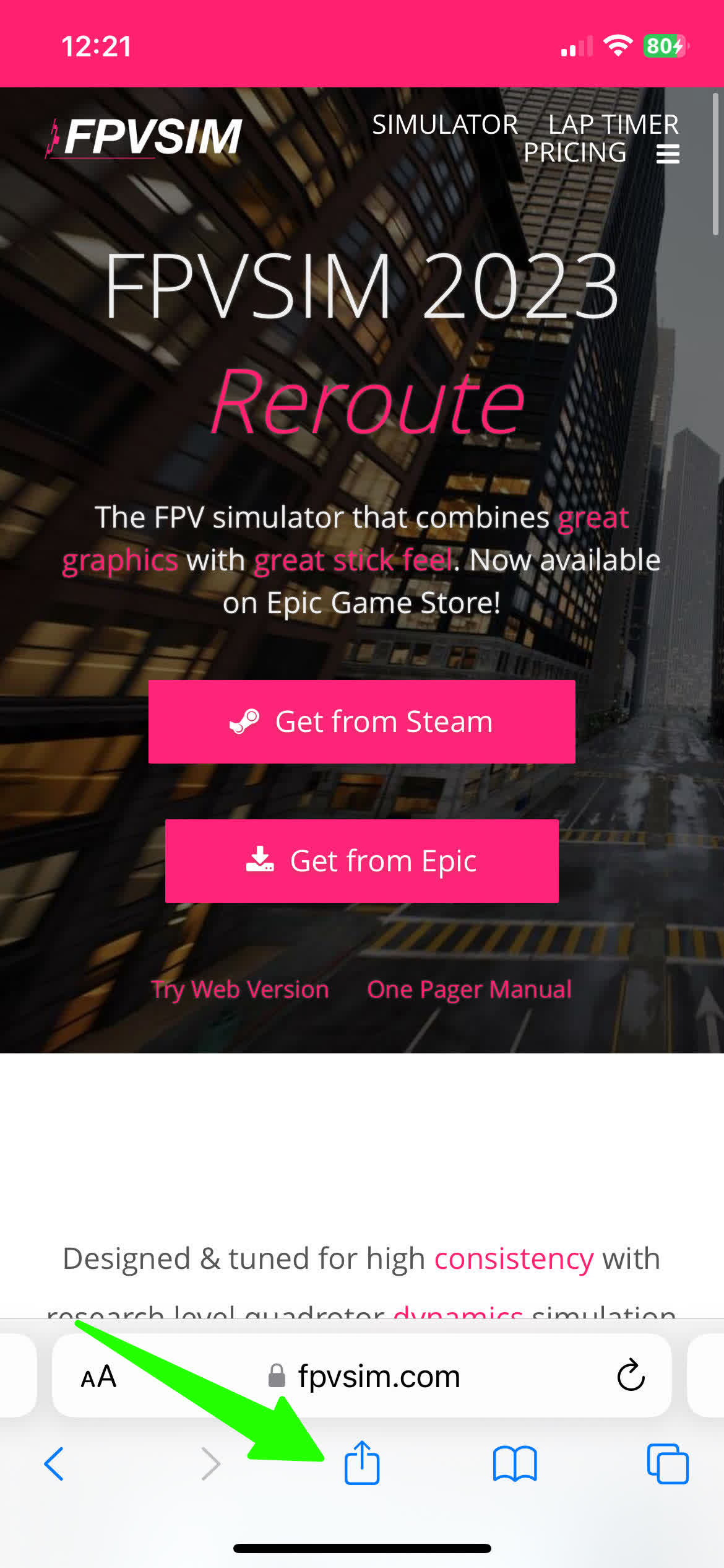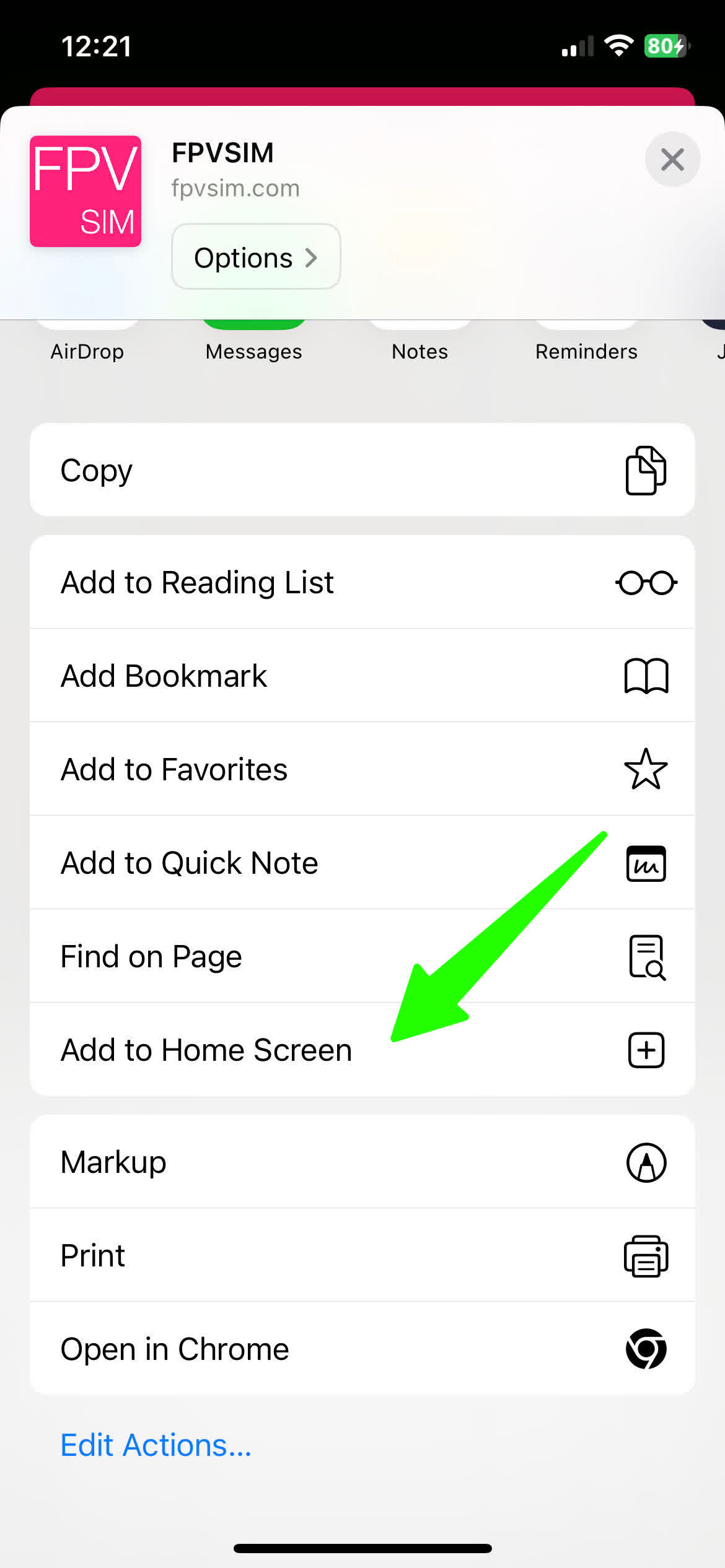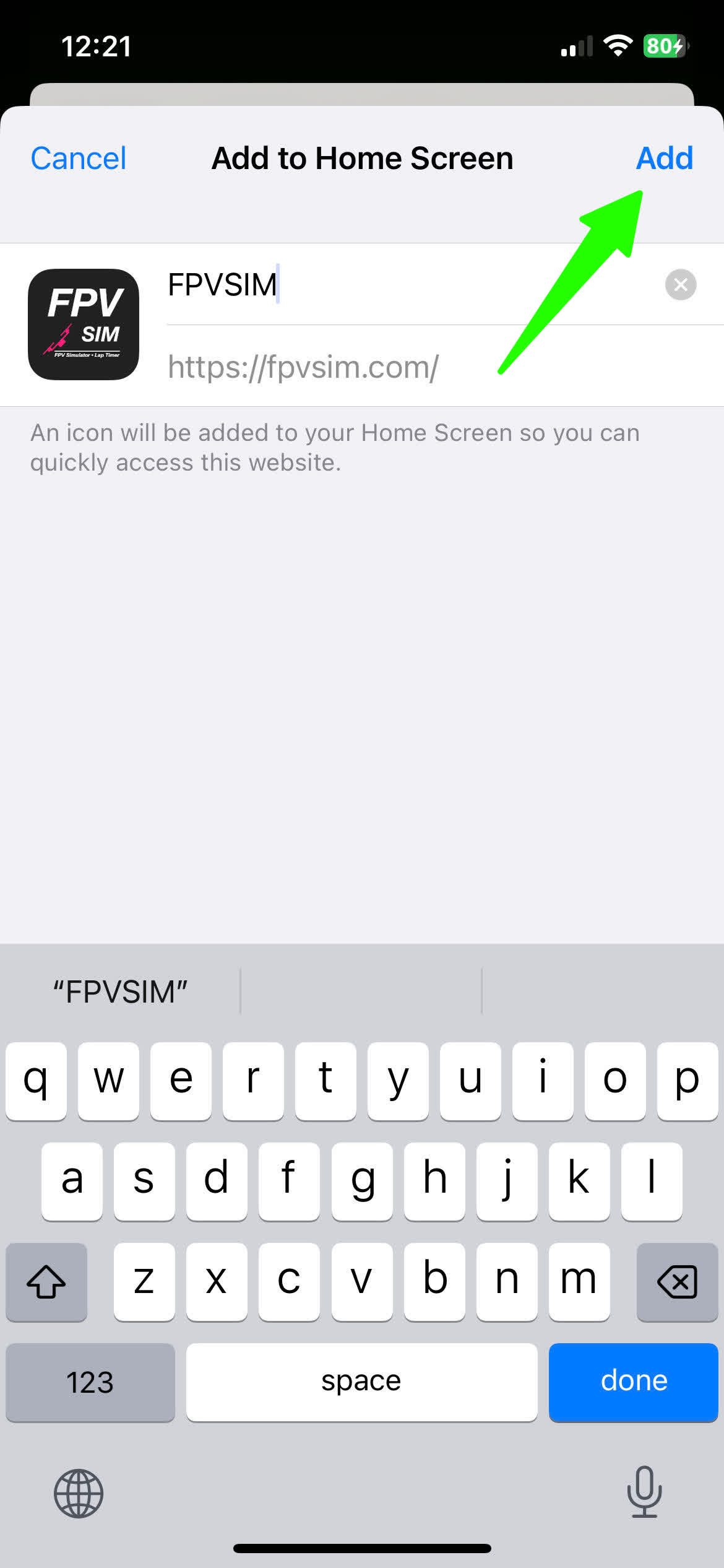 This tutorial goes through how to add FPVSIM Drone Simulator to your home screen and play in full screen mode on iOS. Android should work in a similar way.